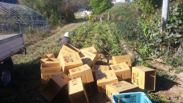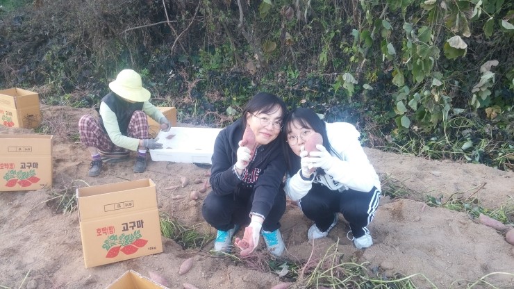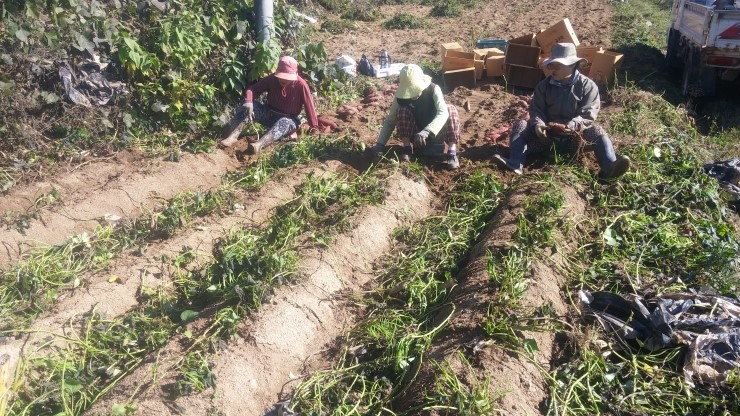 처형들이 고구마를 캐 주려 지원을 오셨군요.