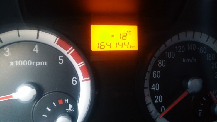 농장에서 승용차 온도 계이지가 -18도를 가리키고 있군요.
