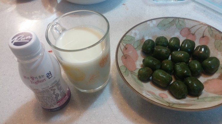 우리 먹는것은 다래 15알로 두컵을 만들었답니다.