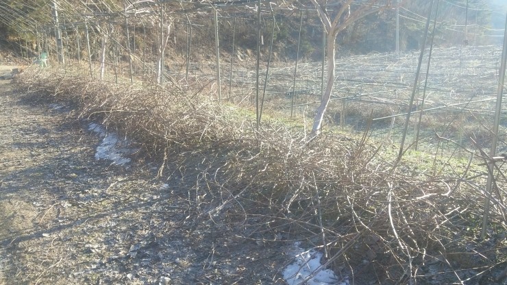 2월에는 겨울 전지할때 잘라낸 토종다래나무 가지를 처리할 준비를 했다네요.