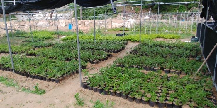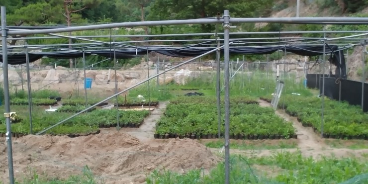 잘 키운 포트 묘목이 가득한 만선다래농원 묘목장