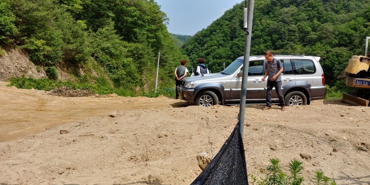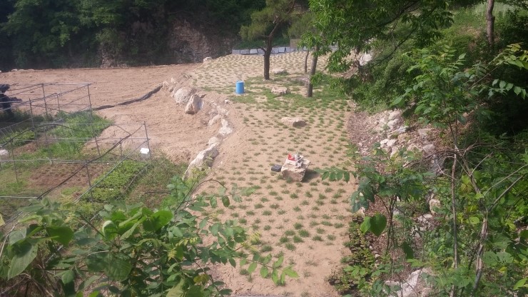 지난해 만선다래농원 영내 사방땜 공사를 할 때 잔디밭을 조성을하다가