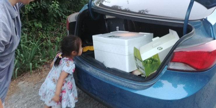 오늘은 아빠가 아토피가 있다며 귀여운 딸과 같이 서울서 만선다래농원을 방문 하셨군요.
