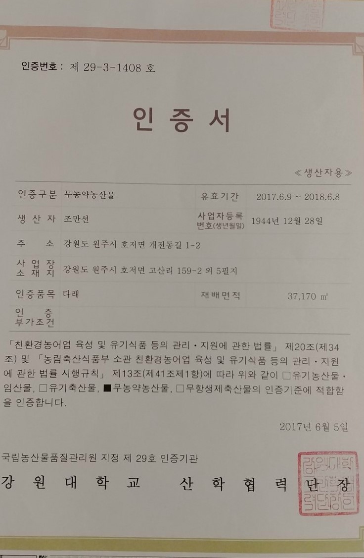 친환경 무농약으로 토종다래를 재배하고 있습니다.