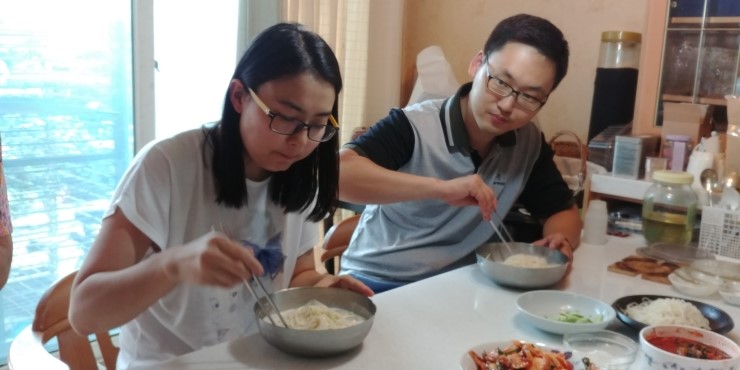 시원한 냉콩국수를 즐기고 있군요...ㅎ