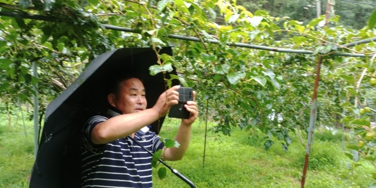 만선다래 농원의 첫 수확 체험의 테이프를 끊으셨네요.