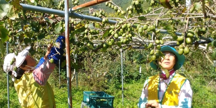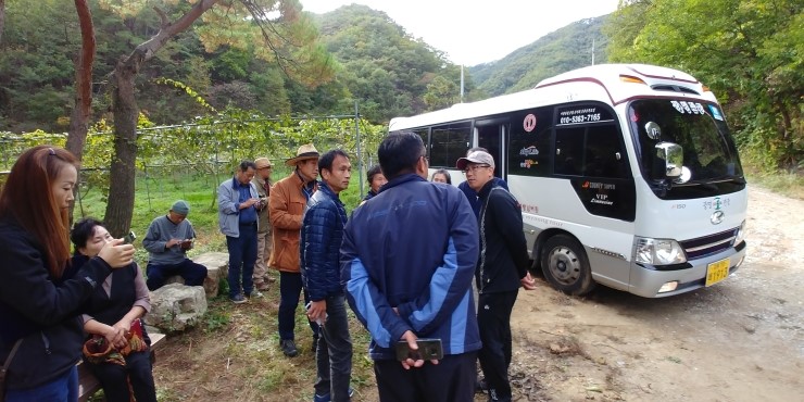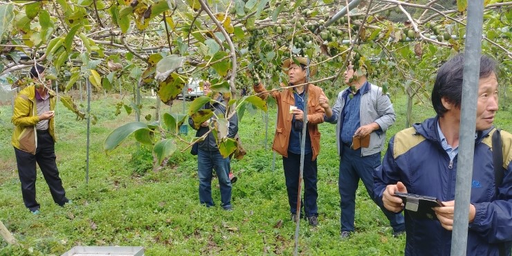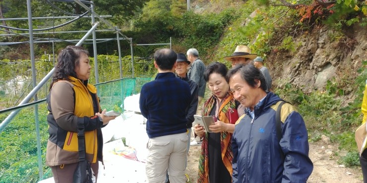 만선다래농원에 단체로 견학 15명이 방문을 하였군요.