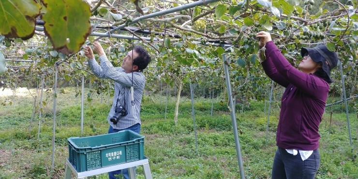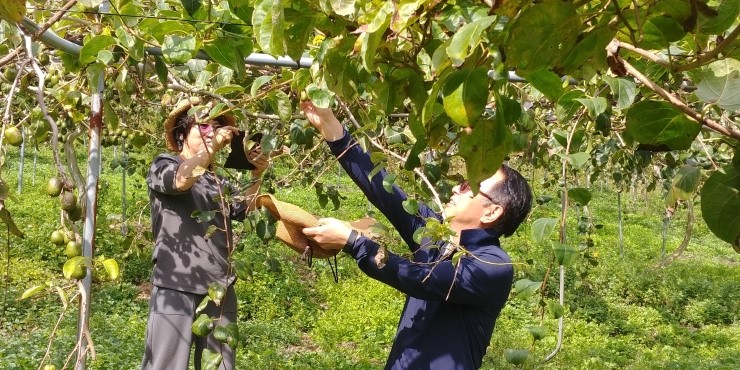 만생종 만선2호의다래가 달려있는 것을 보고 놀라는 모습들