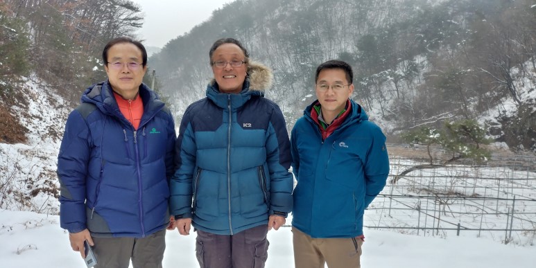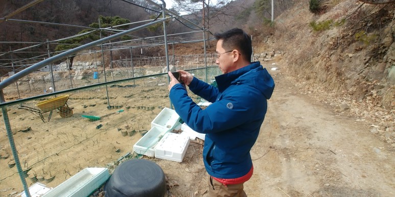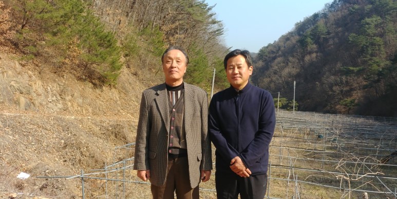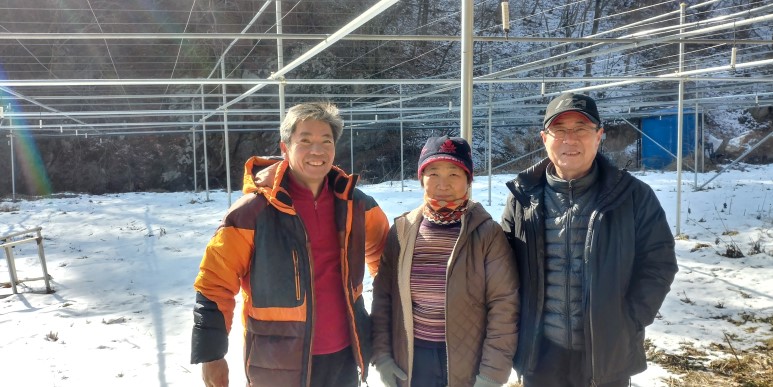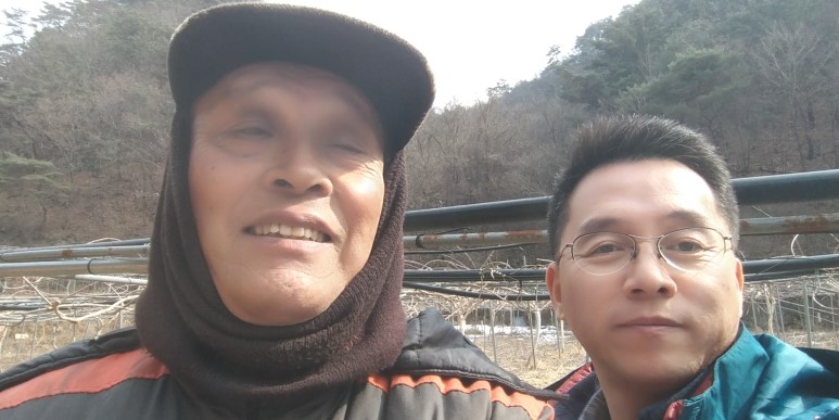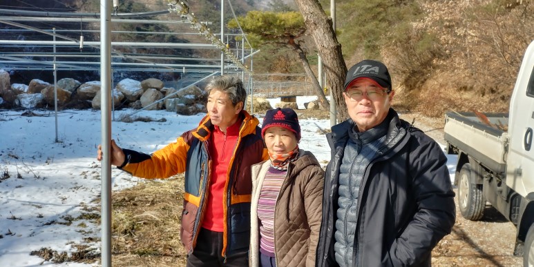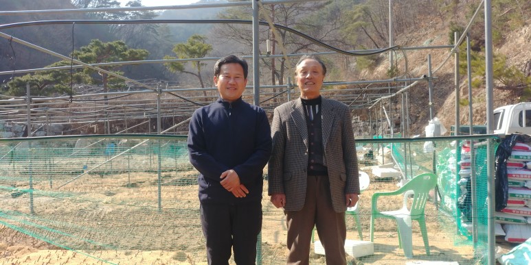 다래 묘목장을 배경으로 황진신사장과 한컷