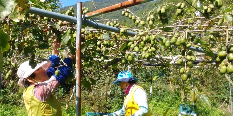 만선2호를 수확중인 만선다래농원 모녀