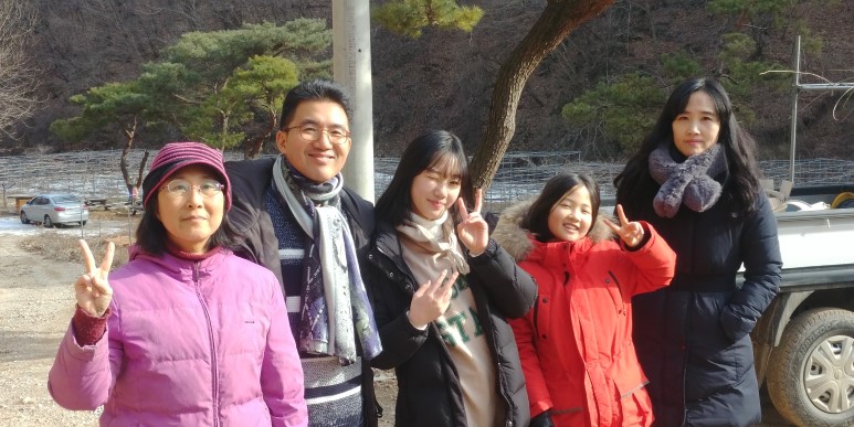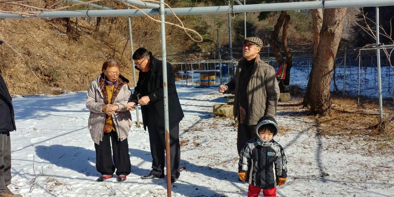 설명절에  아들가족이 우리 딸과 내가 일하고 있는 다래농장으로 와서 한컷