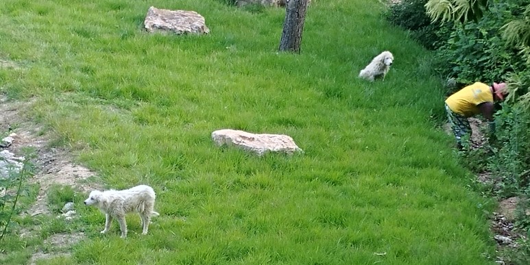 만선다래 안주인이 잔디밭에 풀을 뽑고 있는데...