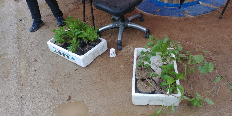숙지삽목과 녹지삽목을 해놓은 모습입니다.